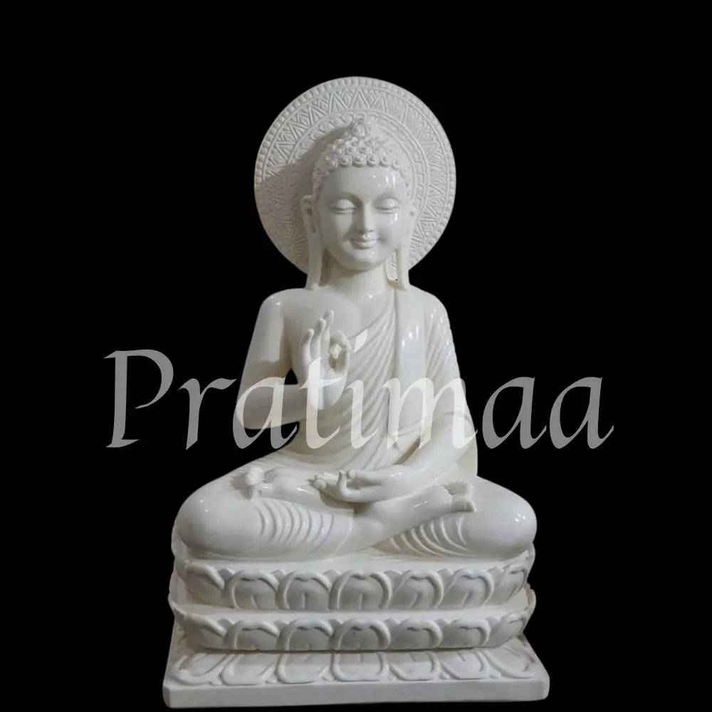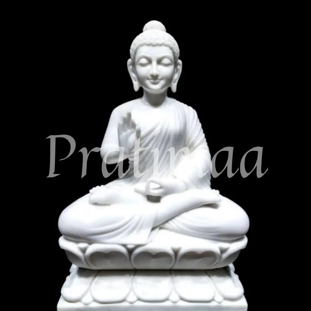 Elegant Buddha marble statue by Pratimaa, handcrafted for peace, positivity, and beautiful home décor.