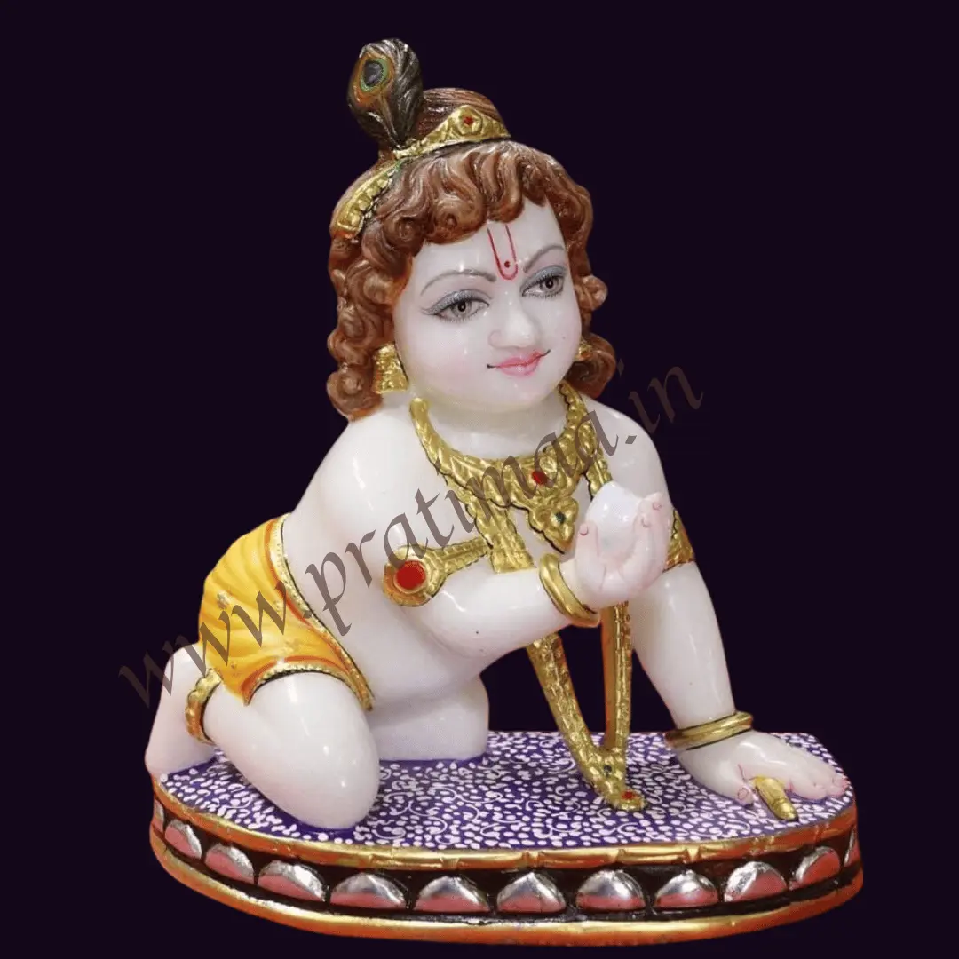 The marble murtiof Laddu Gopal symbolizes love, care, protection, and prosperity. It is believed that worshipping Laddu Gopal attracts happiness, harmony, and positive energy in the house. Devotees treat Laddu Gopal as one of their family members and worship with prayers, food, and affection.